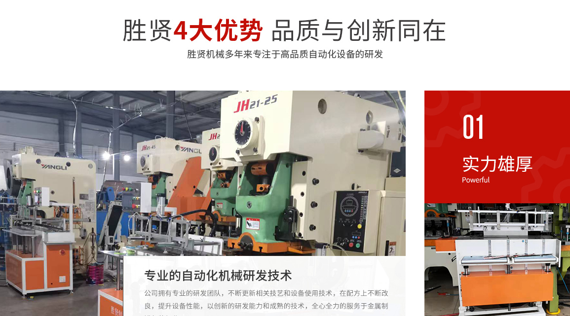 東莞市勝賢機(jī)械設(shè)備有限公司,是一家專業(yè)從事金屬制罐包裝行業(yè)的整套自動(dòng)化設(shè)備和模具開發(fā)、制造與銷售的公司,擁有成熟的技術(shù)和創(chuàng)新開發(fā)能力。我們擁有有一批多年從事設(shè)計(jì)、研究開發(fā)的工程師,和設(shè)備、模具制作的技術(shù)人才。不斷推進(jìn)制罐行業(yè)向高效、環(huán)保、節(jié)能、操作簡易化的方向發(fā)展。 公司主要產(chǎn)品:多次元機(jī)械手設(shè)備生產(chǎn):含片盒蓋/底自動(dòng)生產(chǎn)線,煙盒蓋/底自動(dòng)生產(chǎn)線,醫(yī)藥盒蓋/底自動(dòng)生產(chǎn)線,茶葉罐蓋圈/酒罐蓋圈自動(dòng)生產(chǎn)線,酒罐蓋自動(dòng)生產(chǎn)線、茶葉罐拍底自動(dòng)生產(chǎn)線等等。 罐身自動(dòng)扣骨機(jī)生產(chǎn):茶葉罐/酒罐/化妝品罐/內(nèi)衣罐等等. 其中多次元機(jī)械手專為兩片盒的生產(chǎn)和三片罐的蓋、底、蓋圈、拍底蓋等的生產(chǎn)而設(shè)計(jì),...
